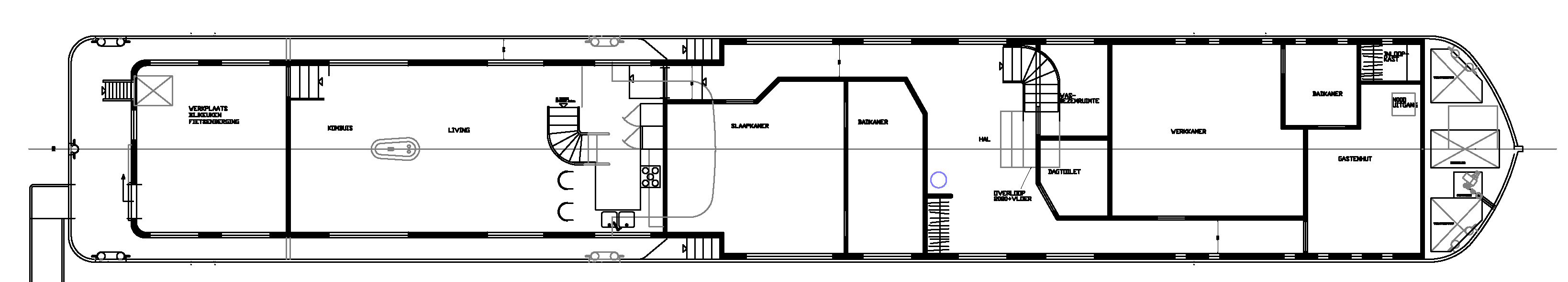 Als er al een nieuw varend woonschip zal komen, heb ik als varensman natuurlijk ook zo mijn wensen. We worden een dagje ouder en daarom moet het schip maximaal manoeuvreerbaar zijn. Geen gillende kreten naar Anne dat ze een touw vast moet maken; wel rustig voor de kant leggen en in alle rust de lijnen vast kunnen maken. Dat vergt een aantal pk’s achterin en een boegschroef, nog liever een stuurrooster (draaibare boegschroef) voorin. Hiermee krijg je het schip alle kanten op. Daarnaast moet het stevig worden gebouwd en tegen een stootje kunnen. Daarom bouwen we de huid en het vlak van 8 mm dik staal en wordt de romp versterkt met een berghout. (een stalen versterking rondom)