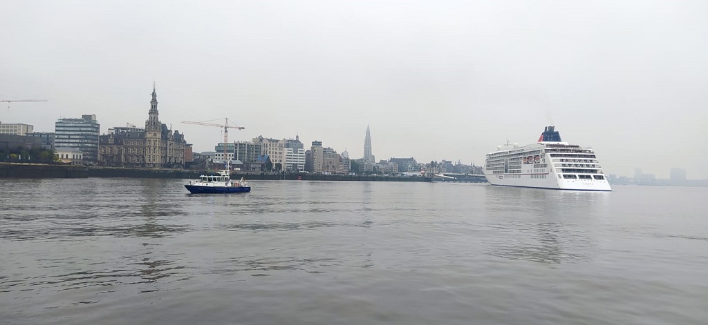 Walsoorden haven | Politieboot en passagiersschip Skyline van Antwerpen | Sint Pauluskerk | Havengebouw | Willemdok |