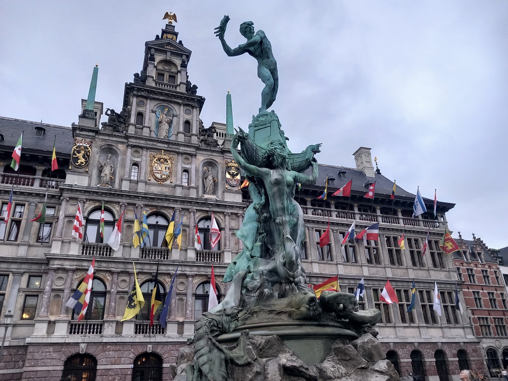 Op maandag 5 augustus verlaten we het Willermdok in Antwerpen. Het weekend brachten we door met het verkennen van deze mooie stad. Op de fiets gingen we zondag naar de vogeltjes markt en toerden we door het mooie centrum van de stad. In plaats van de snelole route over het Albert kanaal kiezen we voor de toeristische route: het kanaal Dessel-Turnhout-Schoten. Hiervoor moeten we de twee masten laten zakken. Ook het blauwe bord en de twee antennes moeten eraf en we moeten erom denken dat we het Velux luik in de woonkamer niet open hebben als we onder de bruggen doorvaren. Bij het passeren van de eerste brug gebruiken we een stok op (onze) maximale hoogte: 4m95. De brug is 5m10...