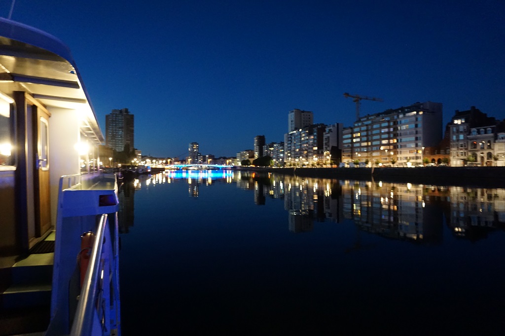 Luik by night | Luik Montagne Bueren | Afgemeerd met oude stad op achtergrond | Splitsing Albertkanaal naar de Maas |