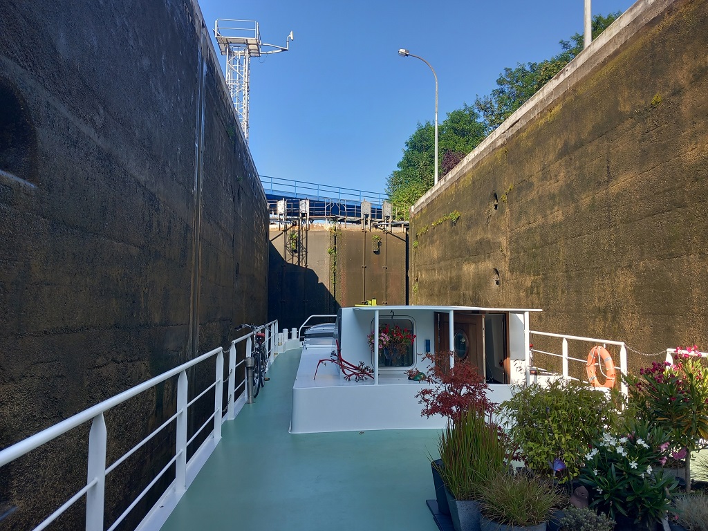 De grootte van de (18) sluizen in lengte en breedte zijn voor ons prima te doen; spannend is de hoogte! Onze juist geüpdate Belgische navigatieprogramma voor de binnenvaart slaat rood uit en geeft aan dat de route niet haalbaar is. Ons Belgische vaarboek geeft aan dat het moet kunnen en daarom kijken we alle bruggen onderweg op de kaart nóg een keer na. Op onze Nederlands kaart verschijnt een brug onder de 5 meter en omdat wij 4.95 meter zijn, kan het dus niet. Nog meer elektronische vaarroutes nagekeken die weer bevestigen dat het wél moet kunnen. Beetje stress, wel gaan we de uitdaging aan en calculeren in dat we wellicht moeten omkeren. De Nederlandse vermelding bleek gewoon fout. Uiteindelijk blijkt er een brug van 5.10 de bottleneck te zijn. De computer houdt veiligheidsmarges aan en deze marge was te klein; het kon net.....