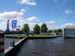de spoorbrug erachter is een klapbrug. Om 08.20 gaan we erdoor.