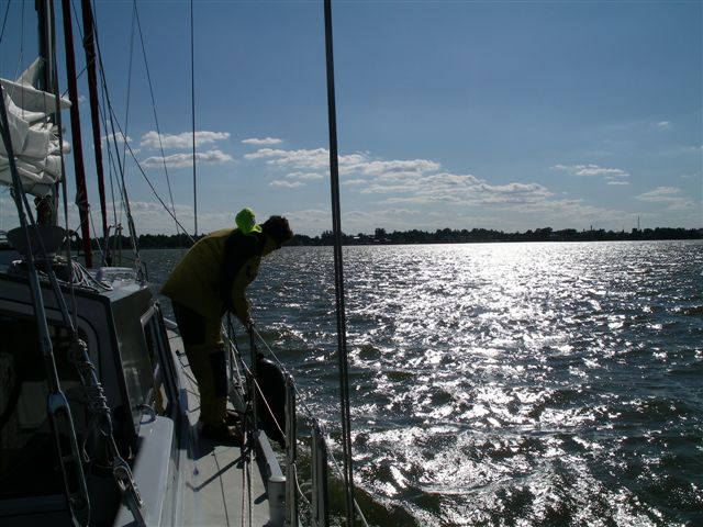 varen, hebben we vooralsnog geen last van golven. Een klein stukje grote fok