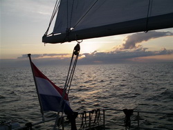 erbij en het schip gaat er als een haas vandoor. We lopen tegen de 8 knopen en