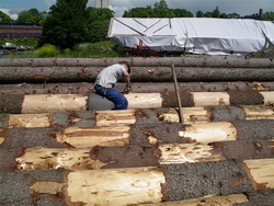 af tussen 2 palen met de kop naar de kant. Met 4 meter ruimte tussen de palen