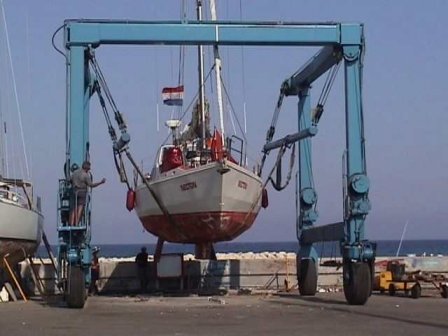Stipt twee uur liggen we voor de bootlift en volgens Cyprus-gewoonte komen