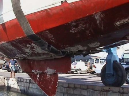 De onderkant van de boot is weer tiptop! We worden uiterst voorzichtig het