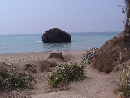Hier werd, uit het schuim van de zee op een rots (de Petra tou Rominou)