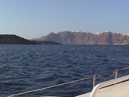 haven van Iraklion uit. Koers noord, naar Santorini.terug naar boven