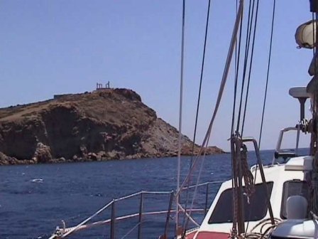 uur. Inmiddels is de meltemi, de sterke noorderwind, gaan waaien.