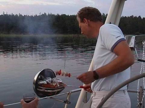 goed glas whisky op onze stoere boot, ten anker in Zweeds water..terug naar boven
