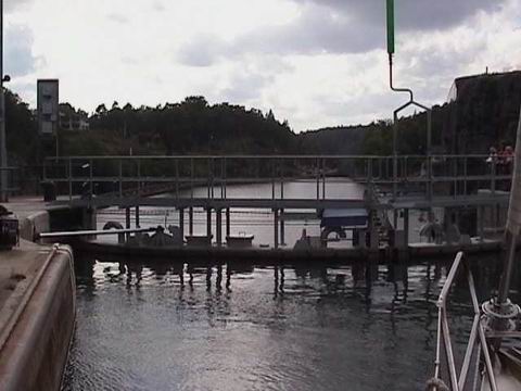 sluis. Dan zitten we weer op zeeniveau, 44 meter lager dan het Vänern.