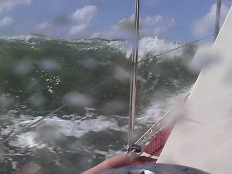 Door de harde wind (uit de verkeerde richting) klapr de boot op het