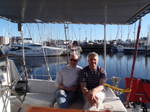 In de haven maakt de huidige crew het schip van binnen en buiten schoon en de ouwe slaapt na een nacht stand by een paar uren bij. De tassen worden gepakt en voor de laatste avond wordt op zoek gegaan naar vers voedsel. Op zondag is echter alles dicht en daarom eten we in het havenrestaurant dichtbij. We hebben deze eerste 14 dagen veel beleefd met elkaar en blikken daarop terug. Ook zorgt Marten voor vele scherpe opmerkingen en we schieten daarbij zo in de lach, dat we ons zorgen beginnen te maken of ze ons het restaurant uit zullen gooien. Gelukkig is dat niet het geval en na een laatste nacht aan boord gaan Anna en Gep en Marten op huis aan. Dank dat je er was!